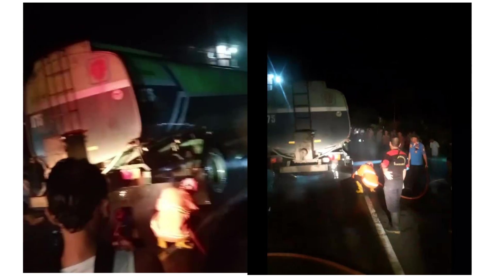 Dari rekaman video amatir warga, tampak kobaran api muncul dari bagian bawah tangki truk. Beberapa warga terlihat berupaya menyiramkan air dan pasir ke arah sumber api sambil menunggu bantuan datang.